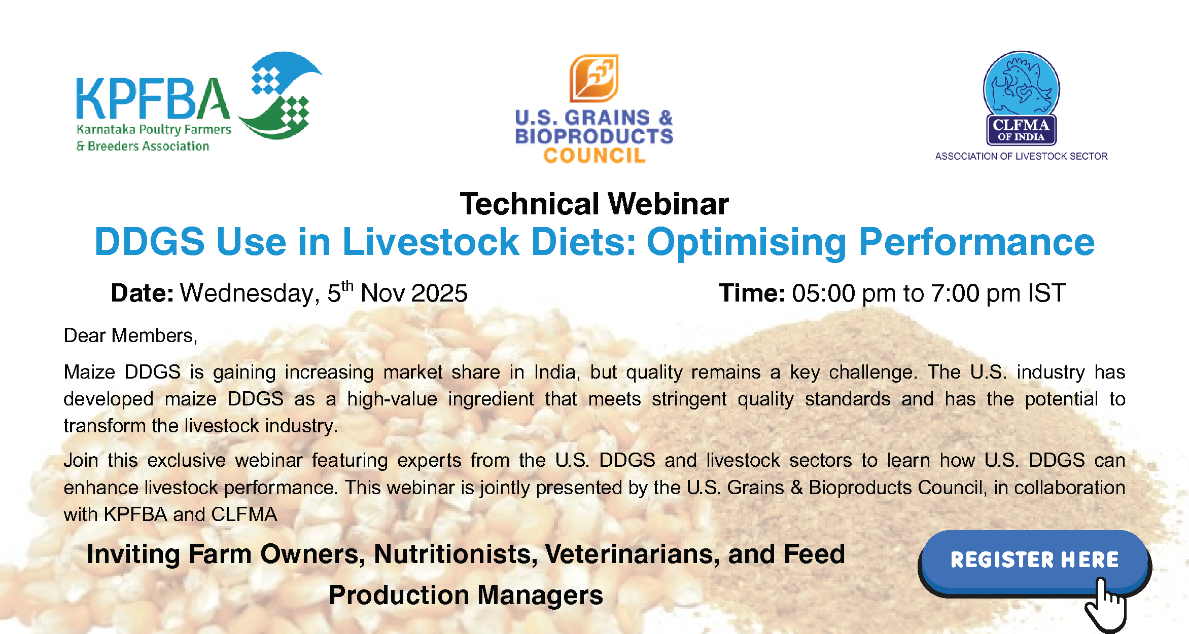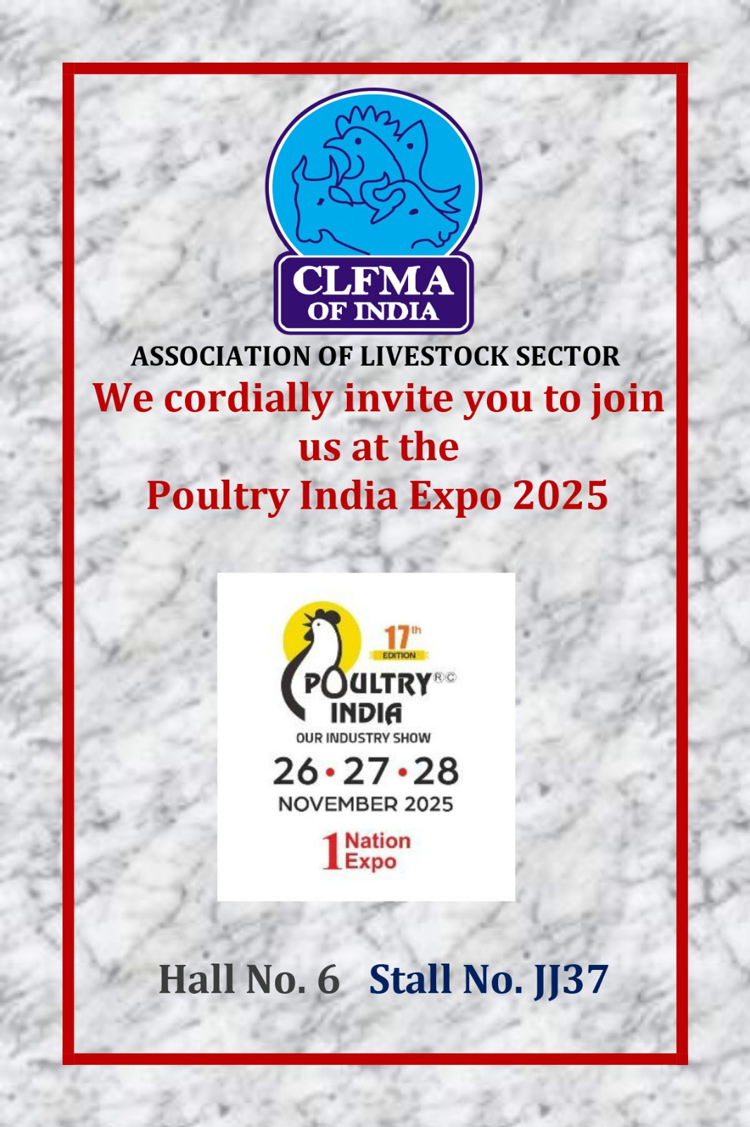 CLFMA of India is the apex organization and the voice of the country’s dynamic livestock sector. It currently has over 230 members representing diverse sub-sectors of animal protein value chain including feed manufacturing, poultry, dairy and aquaculture business, animal nutrition and health, veterinary services, machinery and equipment, processing, distribution and retailing of meat, and ancillary services such as banking.